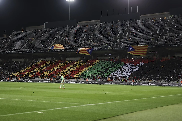 Баннер «За свободу народов – от Каталонских стран до Палестины» вывесили фанаты на товарищеской игре сборных в Барселоне. Пришло больше 30 000 зрителей