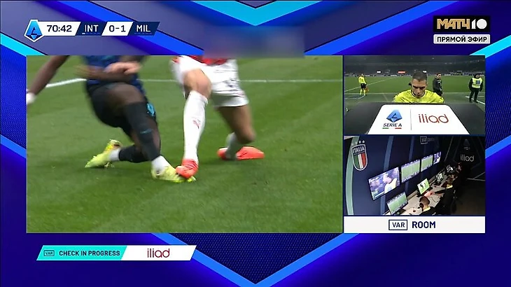 Команды проводят матч в рамках 12-го тура Серии А. На 72-й минуте нападающий «нерадзурри» Маркус Тюрам упал в штрафной площади соперника после того, как защитник Страхиня Павлович наступил ему на ногу. Главный арбитр встречи Симоне Соцца назначил 11-метровый, посмотрев повтор эпизода на мониторе.