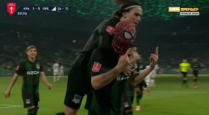 Полузащитник «Краснодара» Никита Кривцов получил желтую карточку за празднование гола «Оренбургу» в маске Человека-паука.