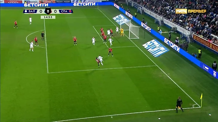 Полузащитник «Балтики» Владислав Саусь оценил стык с Маркиньосом Костой на 15-й минуте матча 17-го тура Мир РПЛ против «Спартака» (1:0).