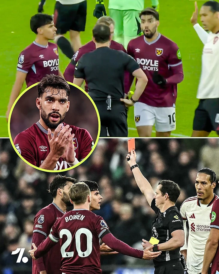 Полузащитник «Вест Хэма» Лукас Пакета получил красную карточку в конце второго тайма матча с «Ливерпулем».