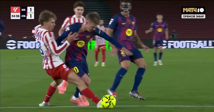 На 35-й минуте перенесенного матча 19-го тура Ла Лиги Пабло Барриос на краю штрафной сбил Дани Ольмо в попытке выбить у соперника мяч.