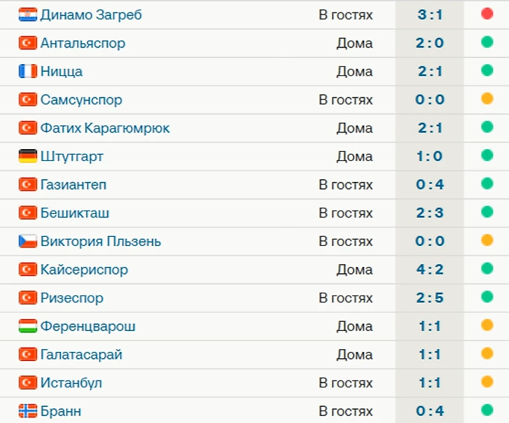 Таким образом, серия клуба без поражений составила 14 матчей. Турки не проигрывают с 24 сентября – тогда уступили в Лиге Европы «Динамо» Загреб (1:3).