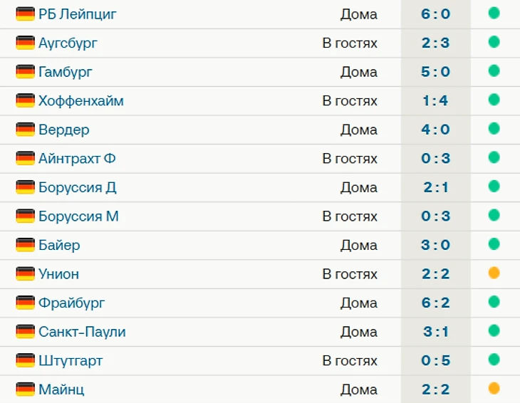 «Бавария» не проигрывает в сезоне Бундеслиги – 12 побед, 2 ничьих. Команда Компани лидирует в таблице, опережая «Лейпциг» и «Дортмунд» на 9 очков