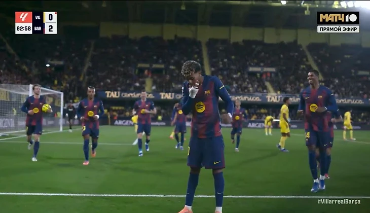 Ламин Ямаль свистнул во время празднования гола в ворота «Вильярреала».