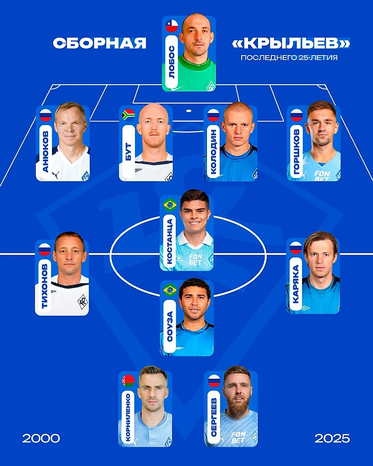 «Крылья Советов» объявили состав символической сборной клуба в 2000-2025 годах по версии болельщиков.