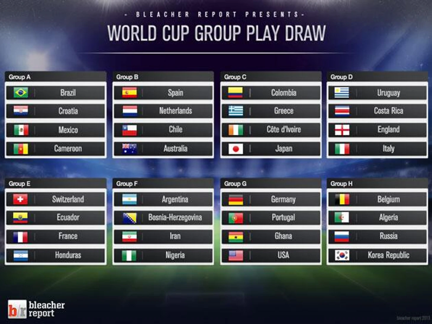 20:52 Жеребьевка началась! Очевидное-невероятное: Бразилия в группе А! Испания – в группу B. Колумбия – С. Уругвай идет в D. Швейцария попадает в группу E, Германия – возглавит группу литерой G, Бельгия – H.