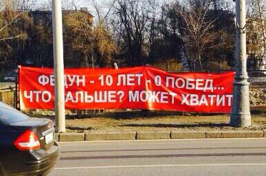 К матчу 25-го тура чемпионата России против «Крыльев Советов» (1:0) был подготовлен баннер: «Федун – 10 лет – 0 побед… Что дальше? Может хватит?»