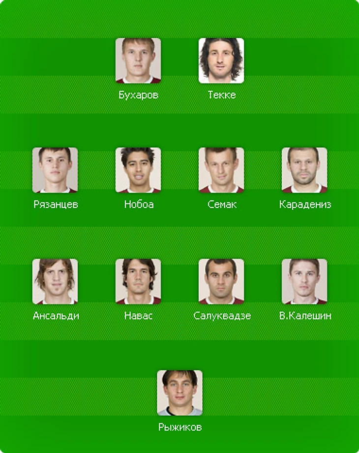 Преимущество «Рубина» над остальными командами премьер-лиги заключается в том, что эти самые «звезды» у него есть в каждой линии, и незаменимых людей в клубе попросту нет. Один из самых стабильных вратарей страны Рыжиков руководит защитниками на русском языке, мечтающий о поездке в ЮАР Ансальди выжигает левую бровку, реактивный Карадениз разгоняет атаки, а возможное будущее сборной России Бухаров таранит оборону соперников. А ведь есть еще Навас, Нобоа, Рязанцев, травмированный Шаронов. Впрочем, на фоне остальных особняком стоит фигура капитана � Сергея Семака. Пару лет назад многие называли его «отыгранным материалом», но в 34 года Сергей Богданович приносит пользы не меньше, чем в 25.