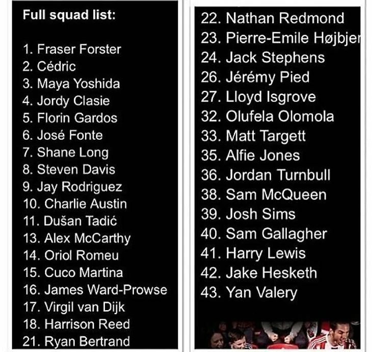 Двое игроков сменили свой номер по сравнению с прошлым сезоном. Фрейзер Форстер совершенно справедливо взял себе номер 1, а Чарли Остин нескромно присвоил себе десятку!