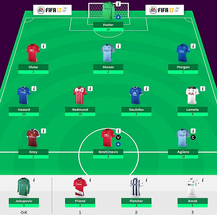 Попадания в Редмонда, Азара, Ибрагимовича и Агуэро — это здорово, но ими никого не удивишь, а вот выбор в пользу Ламелы и Фостера — это те решения, благодаря которым становятся чемпионами. Отдельно выделяем играющие дешевые замены. Команда собрана действительно качественная и у нее большие перспективы в этом сезоне.