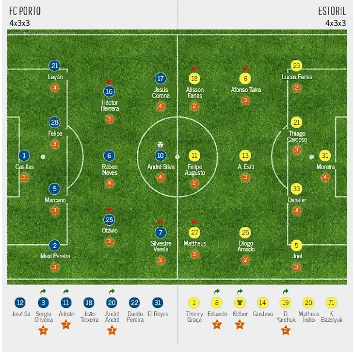 «Порту» как и его лиссабонский «товарищ» одержал победу с минимальным счётом над «Эшторилом». И вновь игра стала настоящим бенефисом одного из голкиперов. И речь разумеется о вратаре «канареек» Морейре. «Драконы» с самого начала бросились в атаку, заставляя Морейру трудиться в поте лица. Отавио на пару с Маркано уже к 16 минуте имели бы на своём счету по паре забитых мячей, если бы не кипер «Эшторила». Сами же гости также имели несколько моментов, но самый опасный создали у собственных ворот, когда Данклер в стиле Ковтуна пробил в перекладину. Во второй половине игры сценарий игры не изменился- «Порту» атаковал, «Эшторил» периодически опасно огрызался. Но не суждено было гостям увезти хотя бы очко с Эштадиу Драгау. Андре Силва незадолго до финального свистка откликнулся на подачу с фланга в исполнении Лайюна и кивком голову отправил мяч точно в угол мимо беспомощного Морейры. Для нападающего этот гол стал шестым в последних пяти официальных встречах, что является лучшим показателем для молодых игроков «Порту» за последние 40 лет. В последний раз такое удавалось легендарному игроку «Порту» 70-80-х годов Фернанду Гомешу.