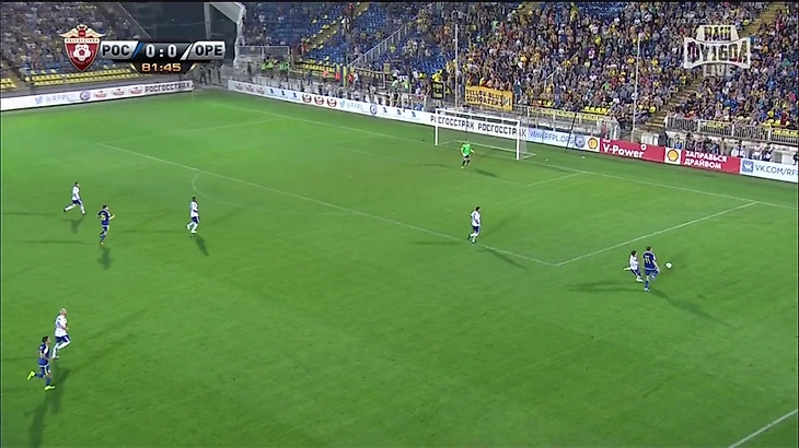 Расстановка "Оренбурга" 4-1-4-1 либо 4-2-3-1 как модно нынче при контратакующей игре. Увидев состав, я обратил внимание на полузащитника, который под нападающим. Обычно мне приятно за такими игроками наблюдать, потому что сам люблю быть инсайдом и распасовщиком. Им оказался Воробьёв. Но на поле он меня разочаровал. Это совершенно не игрок того типа, которого я хотел видеть. В матче с ЦСКА он был худшим в составе "Оренбурга". Атаки в основном через фланги проходили, где действовали Бамба и Ефремов. Оба вингера приятное впечатление оставили, хоть и не многое удавалось. Под конец первого тайма они поменялись флангами и вышло даже чуть лучше, создали момент и инициатива была практически у их ног.