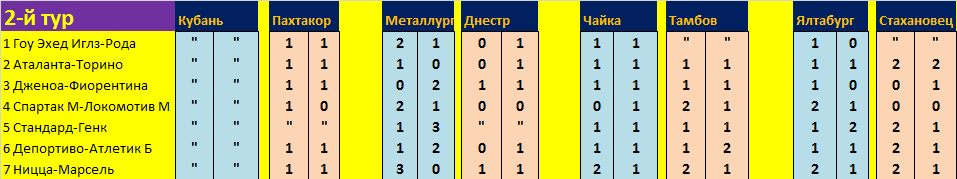 Ницца-Марсель 3-0 Металлург, 2-0 Кайрат и 1-2 Оружейник, 0-1 Вперед, Спартак!