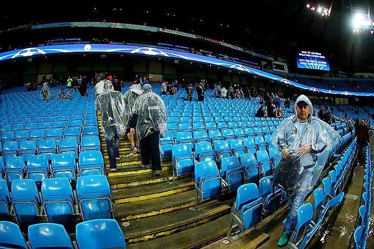 Проблема, впрочем, была не только в гостевых фанатах: многие местные тоже не пришли на стадион, причем не из-за дождя и переноса. В некрасной части Манчестера на Лигу чемпионов ходят вяло: у фанов «Сити» давние проблемы с УЕФА.