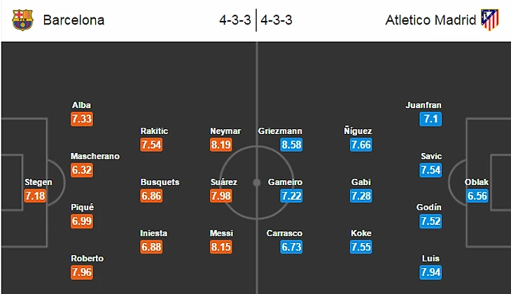 Несмотря на быстро забитый гол Коке на десятой минуте матча и многочисленные атаки игроков Мадрида, всё же именно каталонцы добыли в этом матче три очка. Радуясь как никогда, авторы голов Месси и Суарес, передавали всеобщее настроение успеха и счастья. После этой игры команды ещё встретятся в рамках Лиги Чемпионов, и «Атлетико» отберет у сине-гранатовых возможность повторить предыдущий успех в этом соревновании. Но это, как известно, уже другая история.