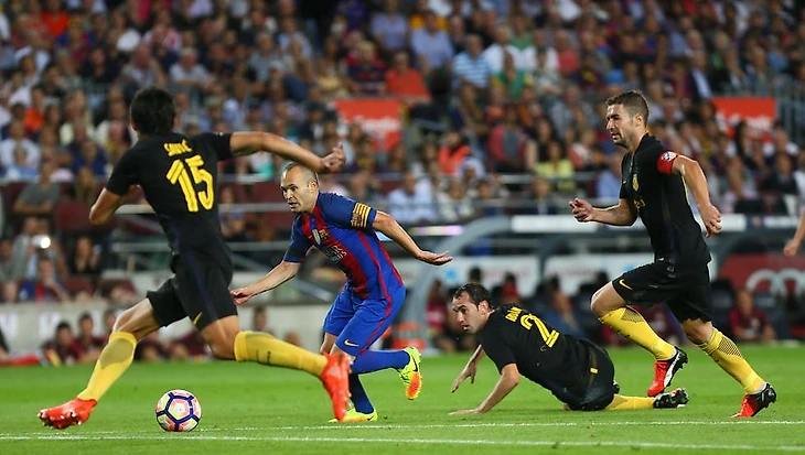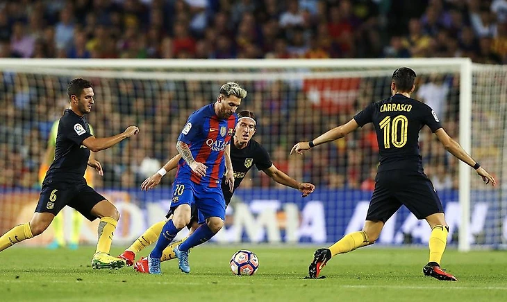 «Барселона», в отличие от «рохибланкос», чемпионат начала даже слишком уверенно — лёгкая победа над «Бетисом» и не такой сложный, как все предыдущие, выезд в Бильбао усыпили бдительность каталонцев, и сон этот стоил им трёх очков в поединке с «Алавесом». Обиду тут же выместили на «Селтике» и «Леганесе», но горький привкус от столь глупой домашней осечки можно было запить только сладким вином победы над «Атлетико». Особенно, вспоминая весеннее фиаско в 1/4 ЛЧ.