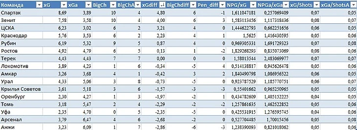 NPGa/xGa – число голов, пропущенных командой (без учета пенальти), разделить на xGa