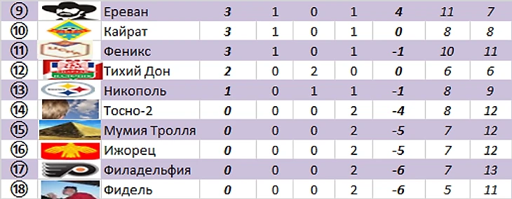 Арсенал-Челси 2-0 Металлург, 3-2 Сируфф и 2-3 Фидель, 1-2 Иртыш, Ереван