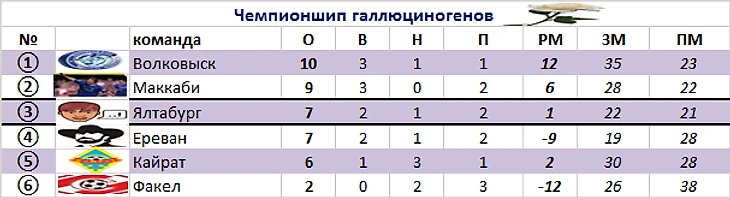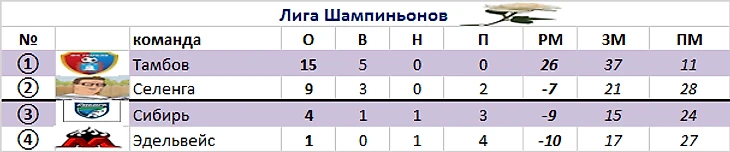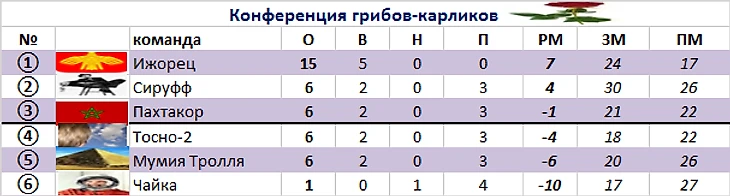 Из 4-х команд с 6-ю баллами (Сируфф-Пахтакор-Мумия Тролля-Тосно-2) две пойдут на повышение, а 2 останутся у разбитого корыта.