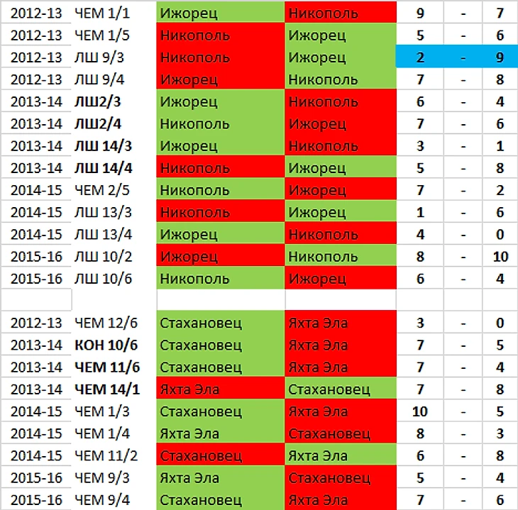 История встреч пар 6-го тура