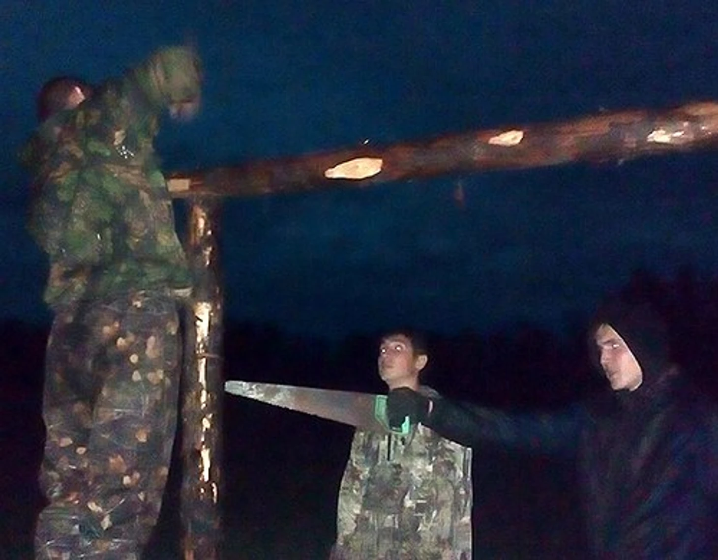Долго можно рассказывать про ворота. Сколько их было…? Трудно сосчитать. Последние стоят уже больше года. В сентябре прошлого года Саня, Игорь, Влад и Миша на мотоциклах привезли бревна. Парни вкопали штанги примерно на метр, прибили перекладины. К сожалению, в нашем архиве с того сентябрьского промозглого вечера остались только смазанные снимки.