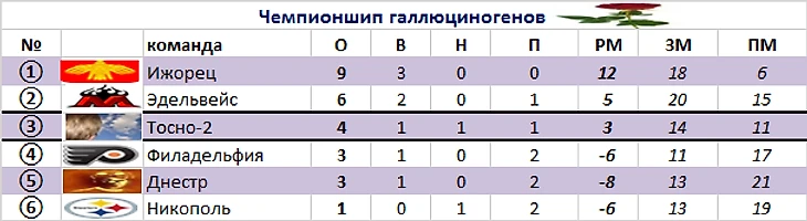 На 2 очка меньше у Тосно-2, на 3 - у Филадельфии и Днестра.