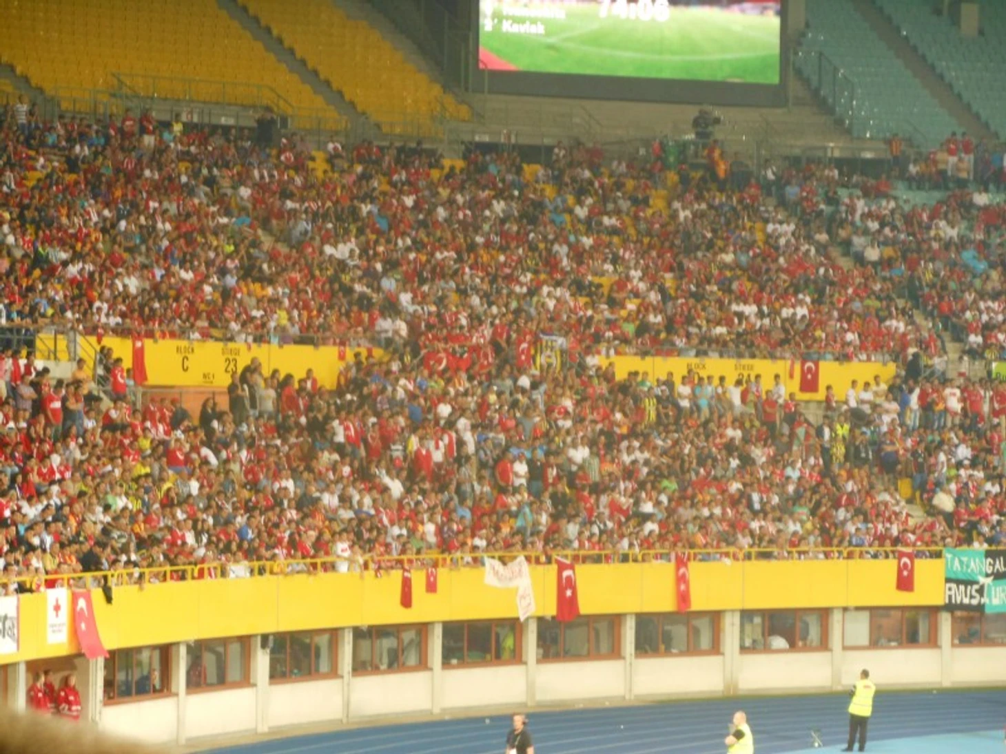 В концовке матча неэтично повели себя болельщики из Турции, которые начали кидать мусор на беговые дорожки, а иногда и на поле, но полиция быстро пресекла подобные попытки.