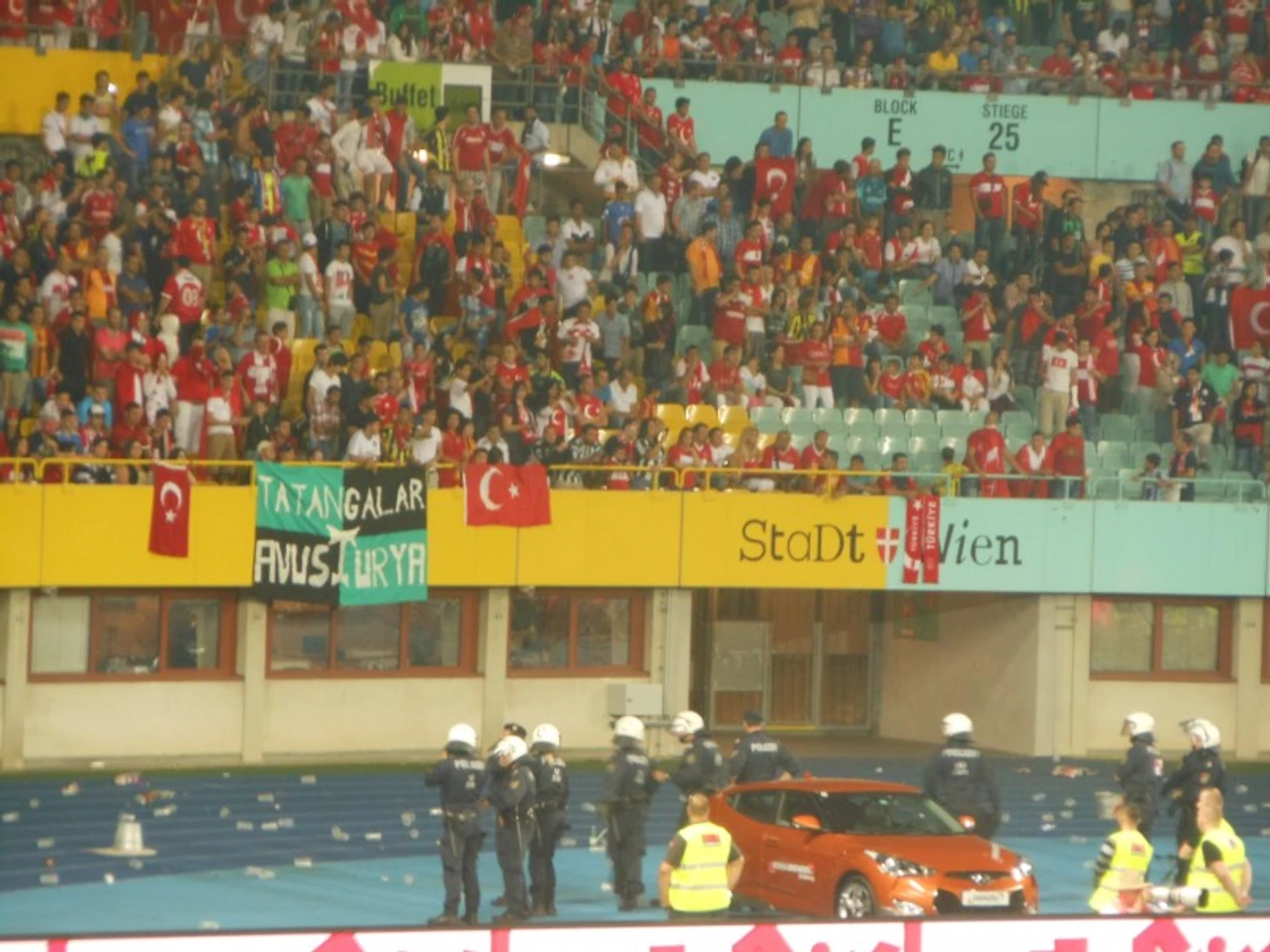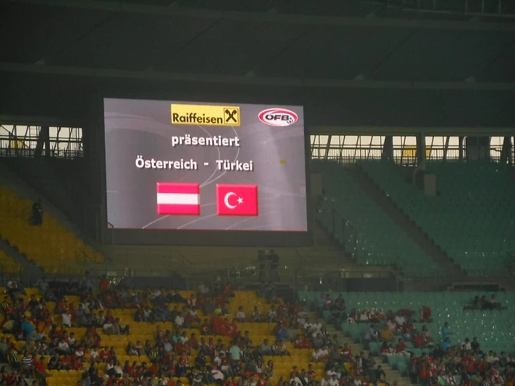 Первое, что бросается в глаза - это просто огромное количество болельщиков сборной Турции. Еще до начала матча было стойкое ощущение, что это их сборная играет домашний матч. Тогда, мне казалось, что засилие турок - это "чисто немецкая фишка", но как же я ошибался. После этого матча сборная Турции играла в Нидерландах. Настоящим шоком было то, что когда футболисты из страны тюльпанов были с мячом их просто засвистывали, как будто играют они где-нибудь в Стамбуле или Анкаре...в Австрии ощущения были лучше, но матч был всего лишь товарищеский и все-таки напряжение было не такое высокое. Плюс, в 2012-м на сборную Австрии болельщики ходили не важно. Все-таки команда совсем не радовала успехами. Например, на домашнем Евро футболисты сборной Австрии сумели заработать только одно очко в матче против Польши. Вастич в дополнительное время, с пенальти, смог спасти команду от баранки на этом чемпионате. Другой пример - это статистика матчей против Турции. С 1989 года сборная Австрии 5 раз проиграла и лишь однажды сумела сыграть в ничью. Но наступал день, который начал менять историю.