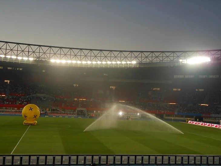Перед началом матча звучит традиционная "I am from Austria". К сожалению, у меня не сохранились видео с того матча плюс стадион был не полный, но вот как эта магия выглядит когда на матче аншлаг.