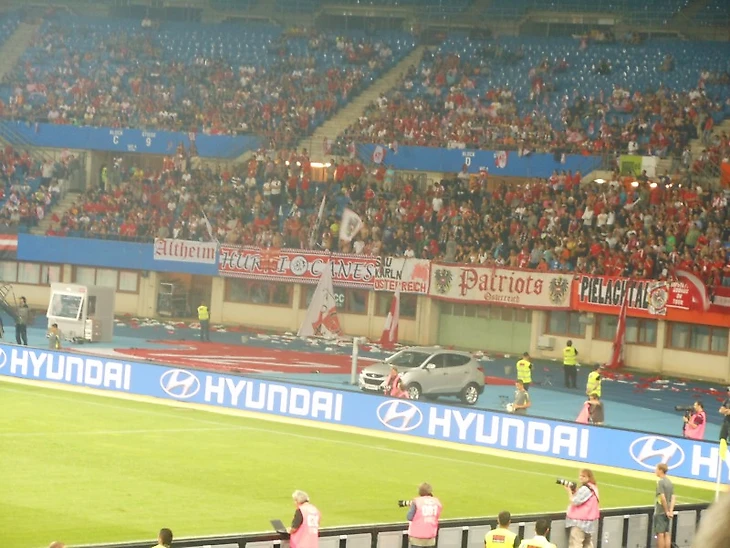 Какие были еще варианты? Конечно же, я думал о немецком футболе. Ведь это чемпионат, который мне нравится больше всего, а сборная в 2012-м заняла 3-е место на Евро и готова была к штурму звания чемпиона мира 2014-го года. Однако, матч между сборными Германии и Аргентины играли во Франкфурте-на-Майне. А это означало арену в менее 50000 человек вместимостью и с очень ажиотажным спросом на билеты. Даже не смотря на то, что немецкие "ультрас" практически не посещают матчи сборной. И все же шансов достать заветный билетик не было и с этим вариантом, тоже пришлось постепенно распрощаться. Забегая вперед, отмечу, что матчи австрийской и немецкой сборных игрались параллельно. Сам матч, был потрясающим, какого и следовало ожидать от таких мощных команд. Поэтому стоит только по-доброму позавидовать, всем кто попал на стадион 4 с половиной года назад. Также, австрийские болельщики радовались, как дети когда узнали, что немцы уступили со счетом 1-3 , позже я расскажу, в чем тут дело и с чем это связано.