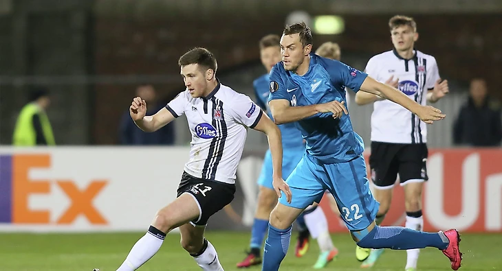 Футболисты ирландского клуба с первых минут показали, что будут играть строго и компактно в обороне, рассчитывая на быстрые контратаки, одна из которых уже в дебюте встречи могла завершиться взятием ворот Лодыгина. Зенитовцы столкнулись с рядом проблем: во-первых, главный тренер Дандолка отлично выстроил игру своей команды в обороне, а к Дзюбе и вовсе поставил персонального опекуна (из-за чего Артему приходилось опускаться ниже, чтобы получать мяч); во-вторых, главный арбитр встречи явно не симпатизировал гостям в этот вечер (чего стоит одна только желтая карточка за, якобы, симуляцию Шатова в моменте, когда должен был быть назначен потенциально опасный штрафной удар в сторону ворот ирландской команды).