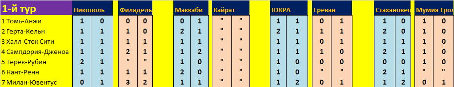 Ставки 1-го тура, первых матчей 1/16 Кубка и 6-го тура Лиги Света