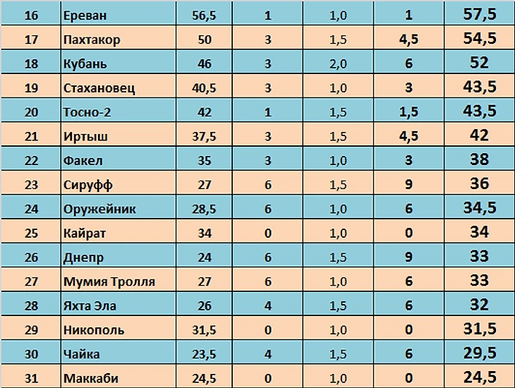 На 2 очка от него отстают опытные Яхта Эла и Чайка.