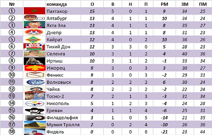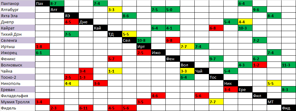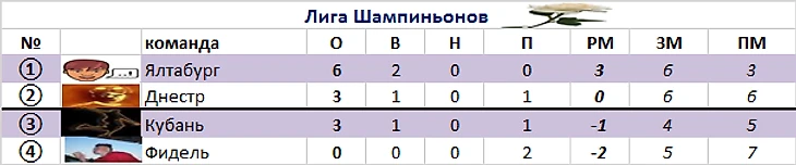 Сразу 3 команды набрали по 3 балла. Это Эдельвейс, Факел и Стахановец.