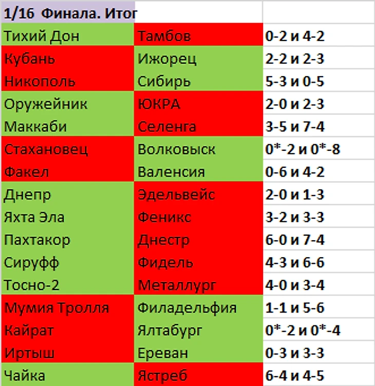 Завершились матчи 2-го тура и ответные матчи 1/16 Кубка