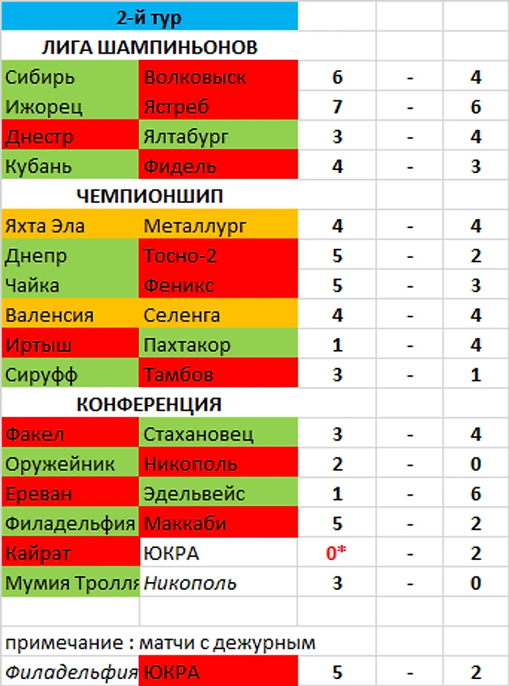 Итоги 2-го тура, ответных матчей 1/16 Кубка и 6-го тура Лиги Света