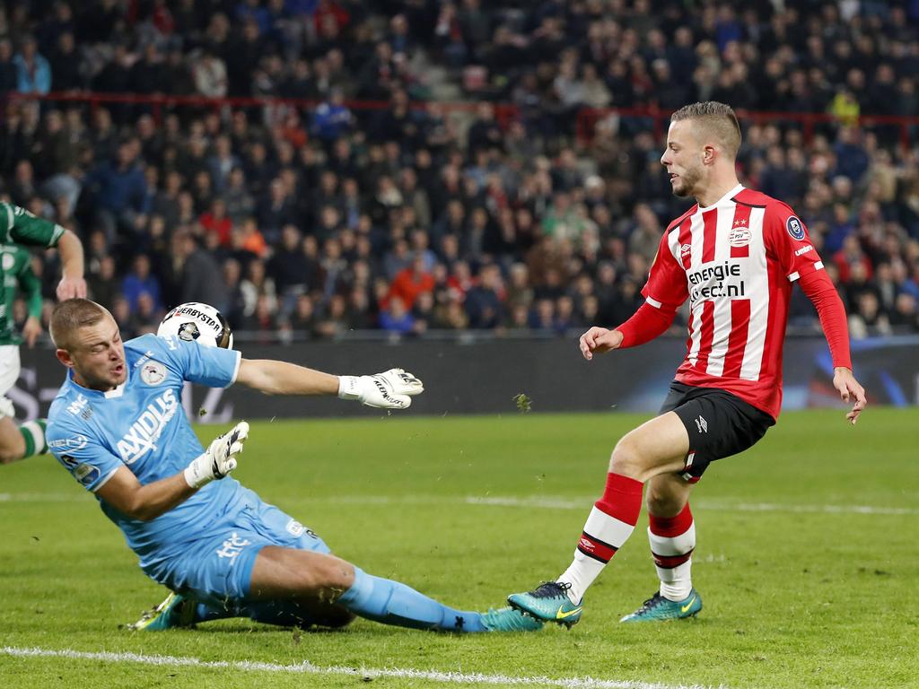 ПСВ на неделе без шансов проиграл "Баварии" 1:4 и команде крайне нужна была уверенная победа. Хозяева сразу захватили мяч под свой контроль и начали создавать момент за моментом. Атакующее трио Перейро - де Йонг - Нарсинг с завидной регулярностью обстреливали владения кипера Кортсмита, но вратарь гостей был на высоте. Матч потихоньку шёл к своему завершению, а ПСВ никак не мог хладнокровно реализовать хотя бы один момент. Дело к ужасу местных фанатов катилось к очередной потере очков, но на 78-й минуте проклятие-таки было снято. Это Барт Рамселаар с передачи Люка де Йонга распечатал ворота Кортсмита. 1:0, очень скромная победа Эйндховена, но главное, что три очка добавились в копилку, а отставание от "Фейеноорда" и "Аякса" сократилось.