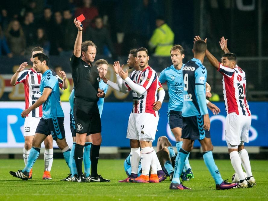 - "Виллем" остался без Соля. Вся "соль" нынешнего "Виллема" как раз в этом испанском форварде. Фран Соль забил 5 из 7 голов своей команды в нынешнем чемпионате, но в ближайшее время тилбуржцам придётся как-то пытаться его заменить. Соль в игре с "Утрехтом" получил прямую красную карточку за грубый фол против Насера Баразите ещё в первом тайме, чем дико подвёл свою команду. "Виллем" храбро держался почти всю встречу, но в концовке всё-таки оборонная крепость хозяев пала и Себастьен Аллер принёс "Утрехту" минимальную победу. После матча главный тренер "Виллема" Эрвин ван де Лоои отметил, что Соль в раздевалке "извинился 25 раз за своё удаление". Впрочем, очков это тилбуржцам не прибавит. А вот "Утрехт" одержал четвёртую победу в пяти матчах и продолжает свой подъём по турнирной таблице. Кажется Эрику тен Хагу удалось компенсировать потерю Барта Рамселаара в середине поля, поэтому ждём от его клуба дальнейших подвигов.