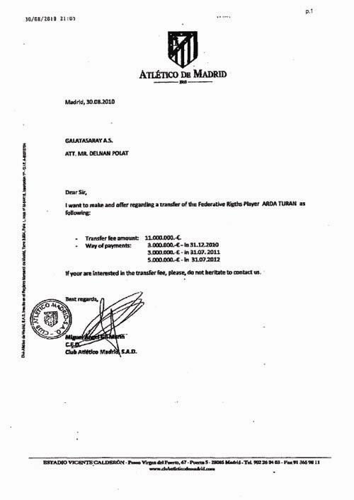 Ну а если точнее, то бумага с запросом о трансфере игрока. Этот лист с предложением "Атлетико" о трансфере Арда Турана из "Галатасарая". Как вы уже, наверняка, знаете, предложение было отклонено.