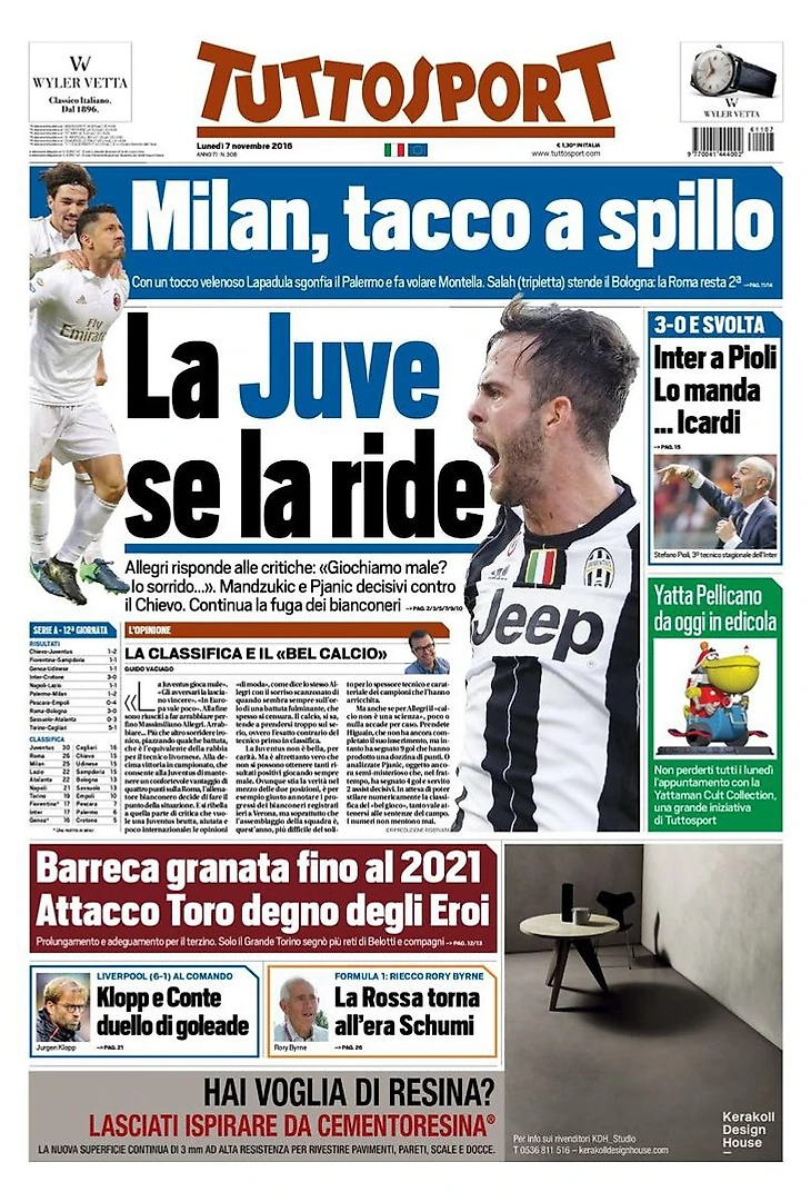 Блог В гостях у Кальчо представляет вашему вниманию обзор первых полос ведущих итальянских спортивных изданий.