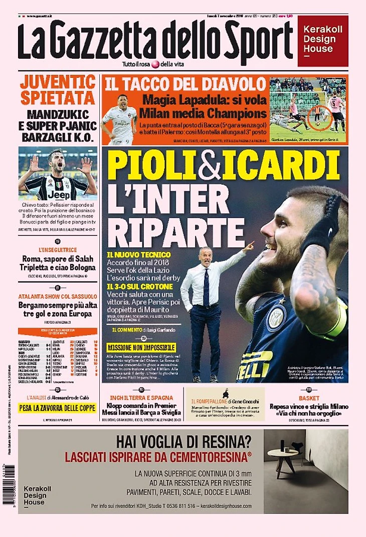 «Пиоли&Икарди, «Интер» начинает заново». Заголовки Gazzetta, TuttoSport и Corriere за 7 ноября