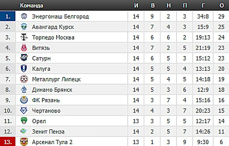 «Энергомаш» Белгород – «Арсенал-2» Тула – 4:0 (3:0)