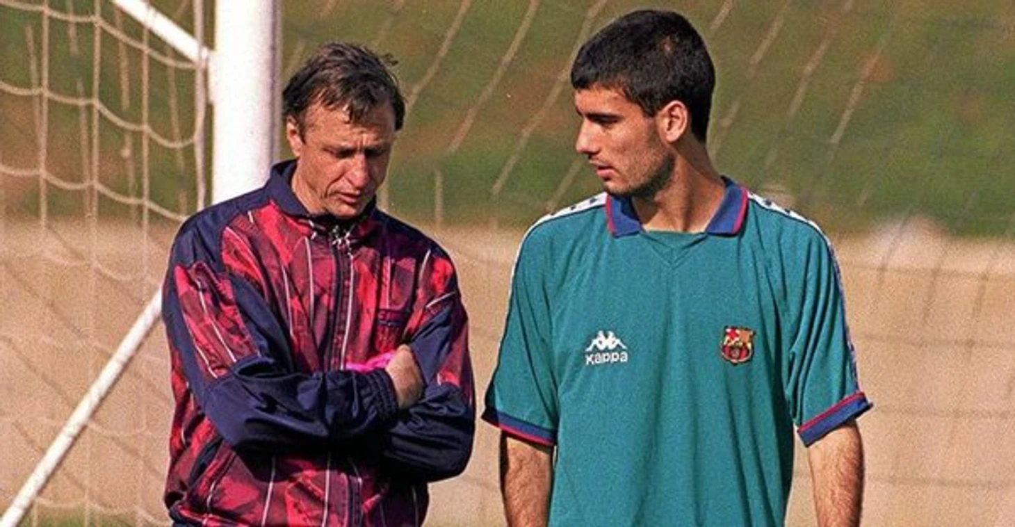 «Моя идея заключается в том, что основные усилия надо сосредоточивать на создании единого целого. И цепь тогда окажется прочной, даже если отдельные ее звенья не так сильны. Клуб не должен зависеть от одной личности. Она может вас однажды подвести; заболеть, получить травму и т. д. И что тогда будет командой?» — объяснял Йохан несколькими строками выше. Здесь же – технические пояснения важности встречного отбора и выбора надёжного паса ближнему перед авантюрной передачей в борьбу в атаку. Готовая концепция тренера Гвардьолы.