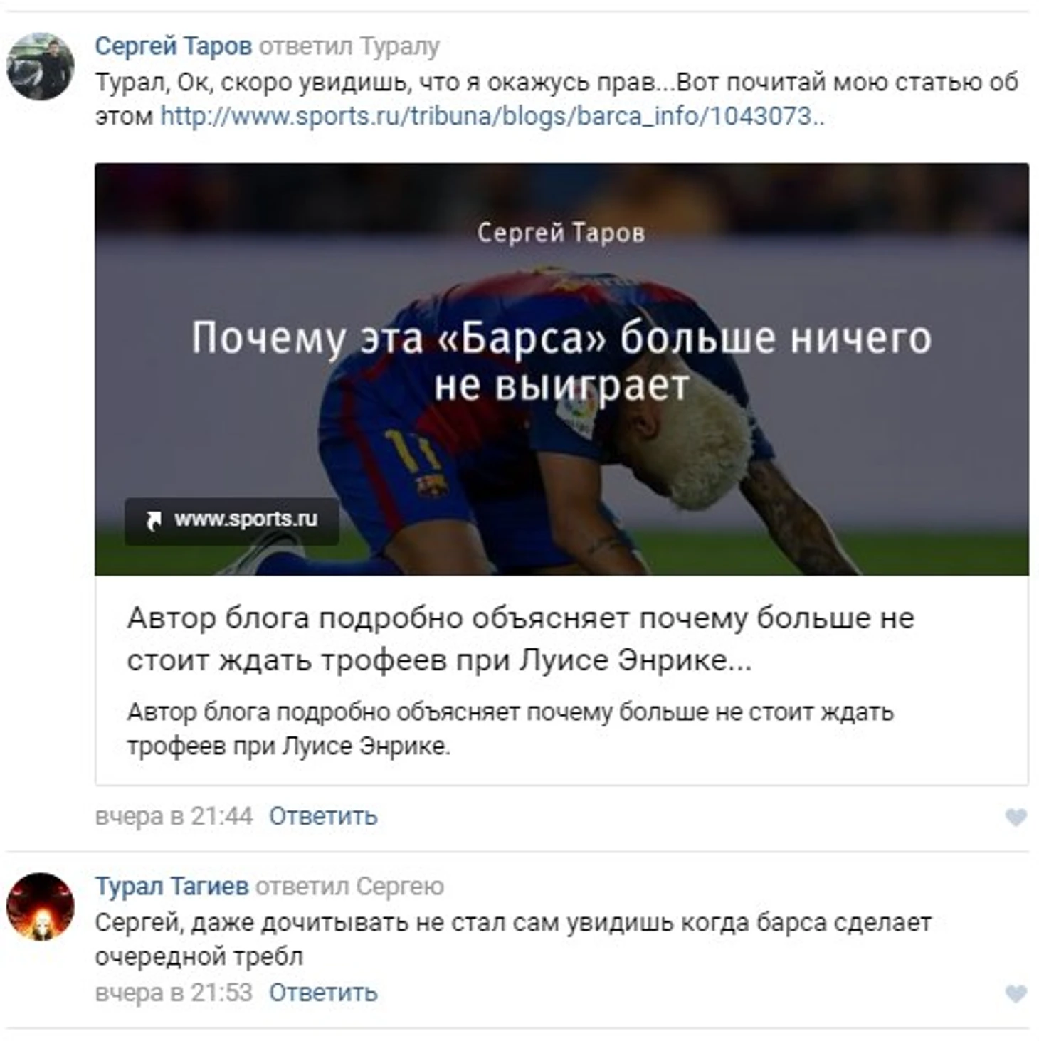 Зашел я по привычке перед матчем в одну из групп болелщиков "Барселоны" в социальной сети и опять столкнулся с типичным заблуждением фанатов, которые абсолютно не понимают реальной действительности.