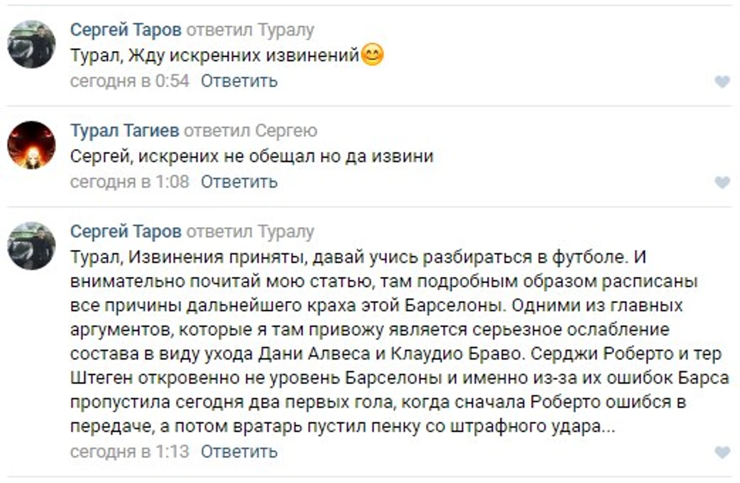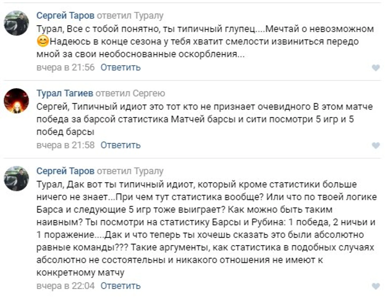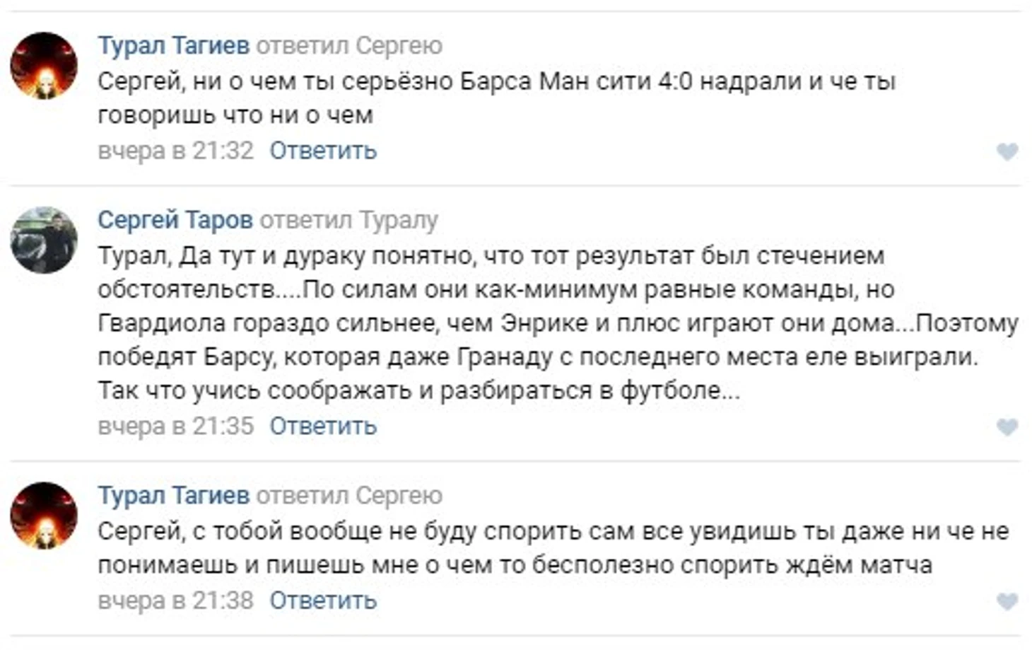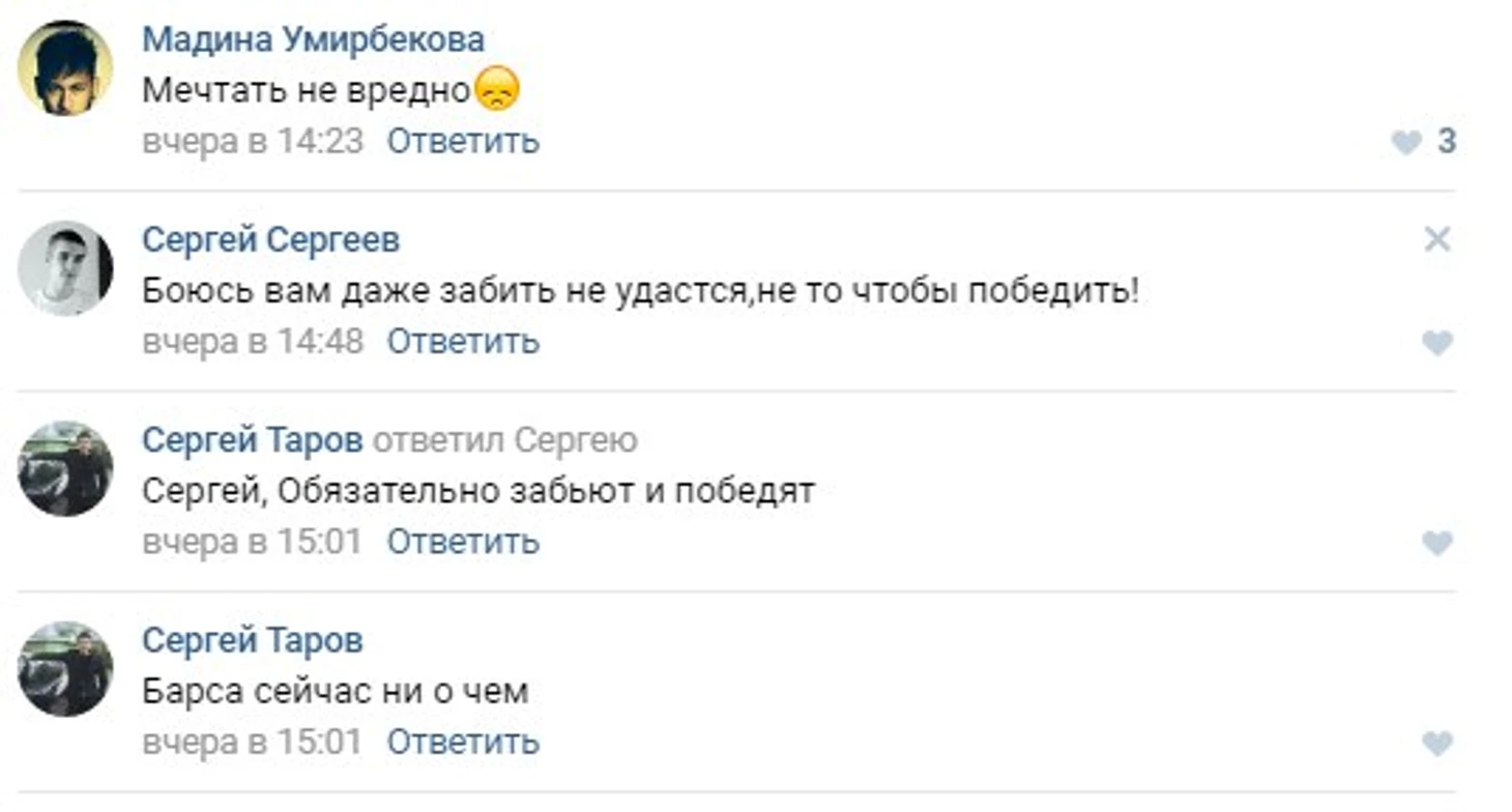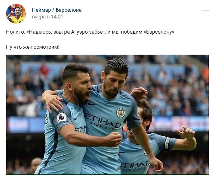 Оставил пару безобидных комментариев, чтобы люди не обнадеживались и не вздумали ставить деньги на "Барселону". Ну и в мой адрес полетели очередные глупые аргументы, согласно которых, "Барса" должна будет просто порвать этот "Сити"...