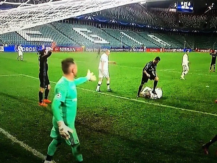 Нападающий «Реала» Криштиану Роналду по ходу матча группового турнира Лиги чемпионов против «Легии» (3:3) наступил на лежавшего игрока польского клуба, информирует RMC. Эпизод прошел мимо глаз членов бригады арбитров.