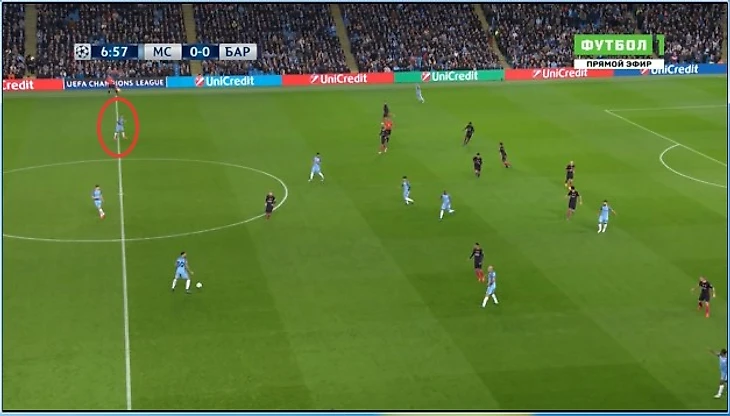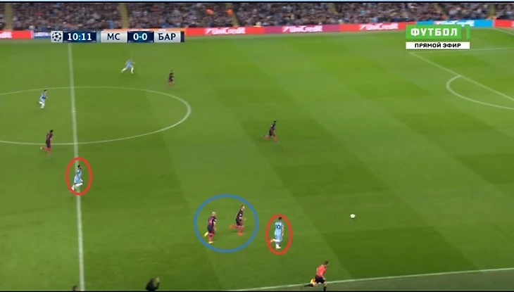 Но уже спустя 10 минут после стартового свистка тренеру «Барселоны» пришлось дать сигнал к обратной рокировке поскольку Нолито в стартовом составе не оказалось, а его место на фланге занял менее искусный дриблер де Брюйне. При этом, номинальный левый защитник Коларов, в первом тайме по обыкновению был наделен в момент владения командой мячом скорее функциями центрального защитника, и атакующую активность не проявлял.