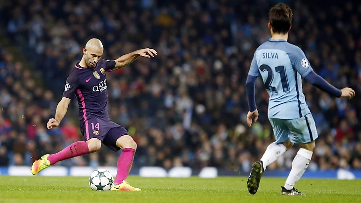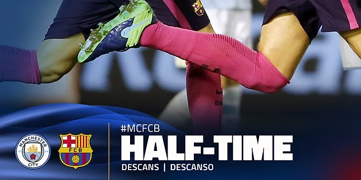 Но вопреки предматчевым ожиданиям, на протяжении большей части первого тайма хозяева поля не продемонстрировали высокой интенсивности применяемого ими целевого прессинга, который большей частью напоминал давление на защитную линию Блауграны, преследующее цель, скорее противодействия быстрому вертикальному развитию атакующих действий гостей, нежели попыток отобрать мяч у соперника и организовать собственную мгновенную атаку. Голкипер и центральные защитники «Барселоны» имели возможность и время относительно спокойно принимать решения. А с учетом кадровых проблем «Барсы», логично было ожидать прессинга, качества и интенсивности, сродни тому, что «МС» продемонстрировал на «Камп Ноу». Но видно страх перед контратакующими возможностями атакующего трио «Барселоны» вынудил Гвардиолу быть более осмотрительным, что, впрочем, его команду совершенно не обезопасило. Именно убийственный по своей скорости контрвыпад с участием Неймара и Месси по истечении 20 минут игрового времени, ставший следствием неудачно выполненного стандартного положения, явился прямой причиной эмоционального всплеска гостей, позволившей им доминировать на поле в следующие 20 минут, демонстрировать хорошие скорости в комбинационной игре и создать еще несколько потенциально голевых моментов у ворот Кабальеро.