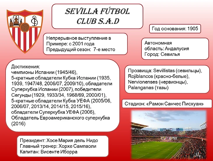 «Севилья» - 4 место, 21 очко, 18-3 (забитые-пропущенные), 6 победы, 3 ничьих, 1 поражение.